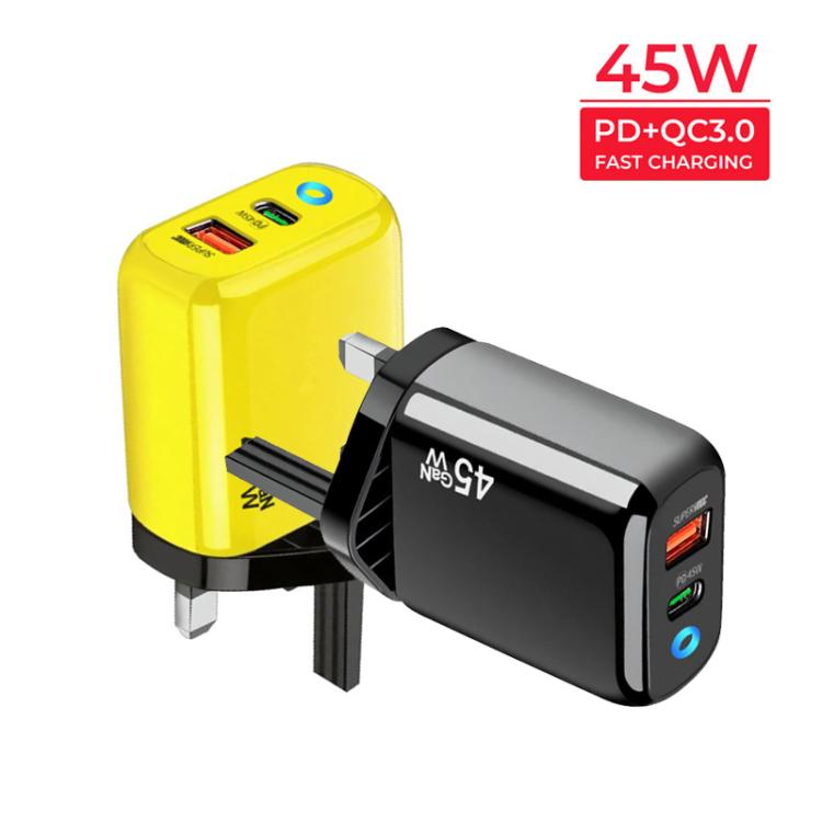 Cargador GaN 45W PD3.0 + QC3.0 totalmente compatible con protocolos para portátiles y tabletas, enchufe británico (amarillo)