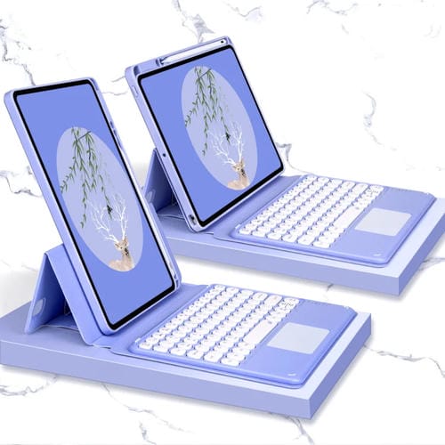 Case de Cuero Teclado Bluetooth con Panel Táctil Estuche Rotativo para iPad 10.2 (2021, 2020, 2019) Air 2019 Pro 10.5 (Luz Púrpura)