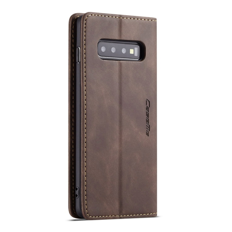 Estuche multifuncional Caseme-013 de cuero con tapa horizontal esmerilado para Galaxy S10 Plus con ranura para tarjeta soporte y billetera (Café)