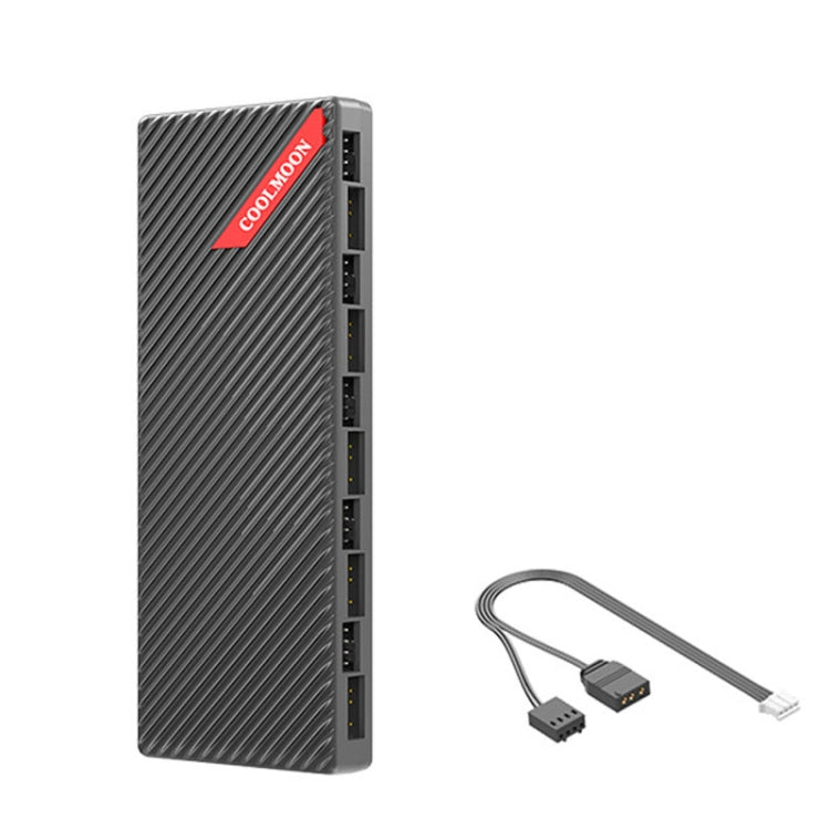 Divisor Ventilador 10 Puertos Coolmoon AM10 ARGB + PWM Control Temperatura 5V 3Pin Hub (Negro)