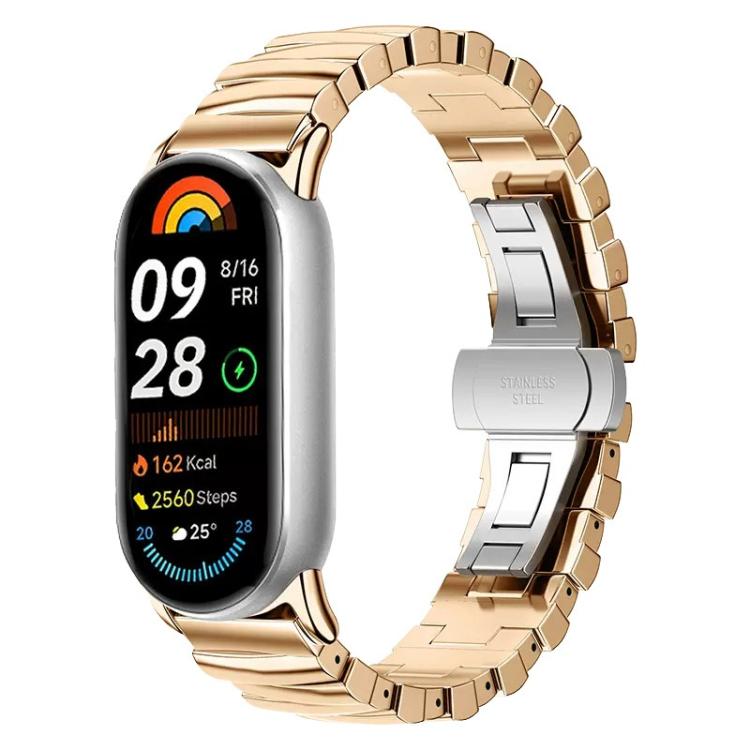 Correa de acero inoxidable con hebilla de mariposa irregular para Xiaomi Smart Band 9/8 (dorada)