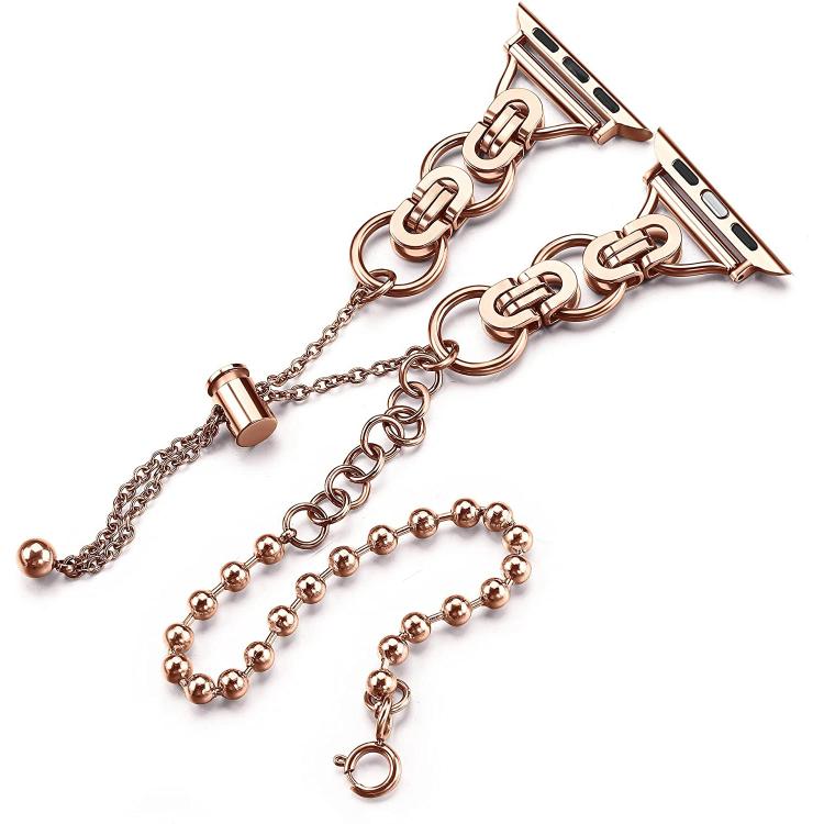 Correa de aleación de zinc con cadena de cuentas de doble círculo para Apple Watch de 46 mm, 49 mm, 45 mm y 44 mm (oro rosa)