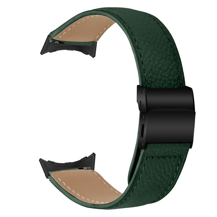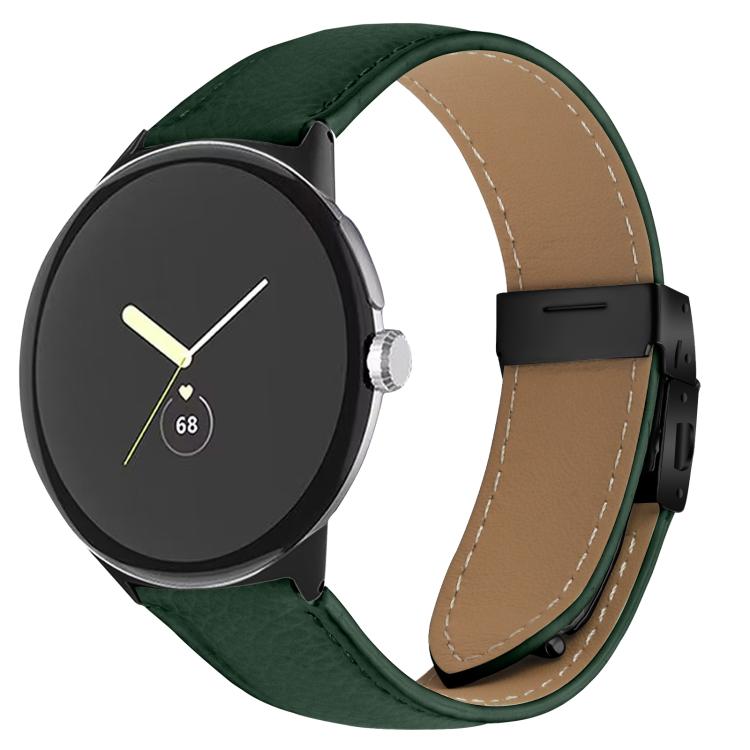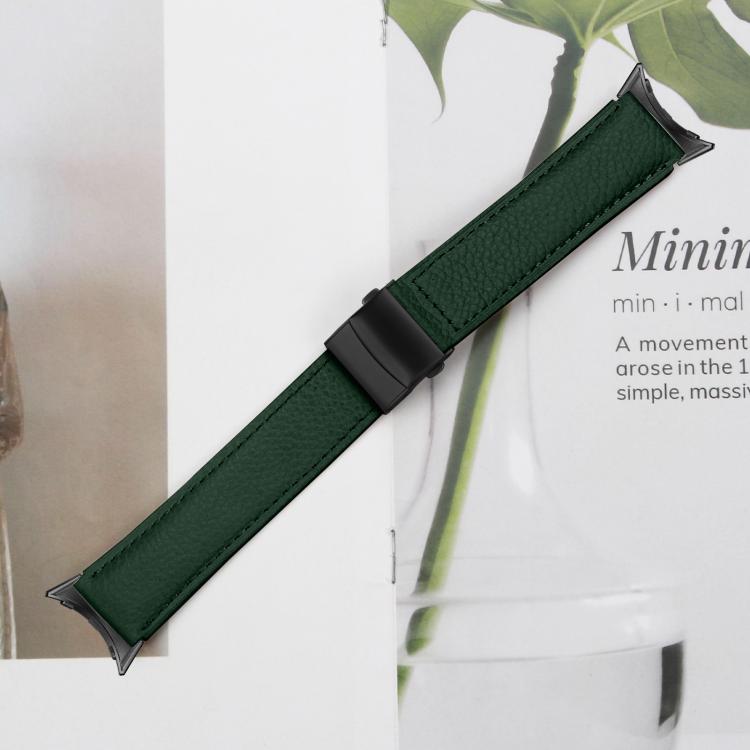Correa de cuero con hebilla de caparazón de tortuga negra con textura de lichi de 41 mm para Google Pixel Watch 4 / 3 / 2 / 1 (verde)