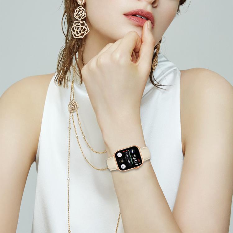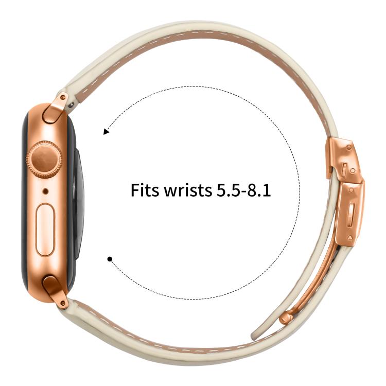 Correa de cuero con hebilla trasera de tortuga en oro rosa con textura de lichi para Apple Watch de 42 mm, 41 mm, 40 mm y 38 mm (blanco cremoso)