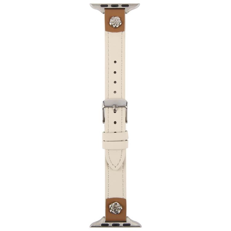 Correa de cuero de microfibra con remaches y tacto camelia para Apple Watch de 42 mm, 41 mm, 40 mm y 38 mm (blanca)