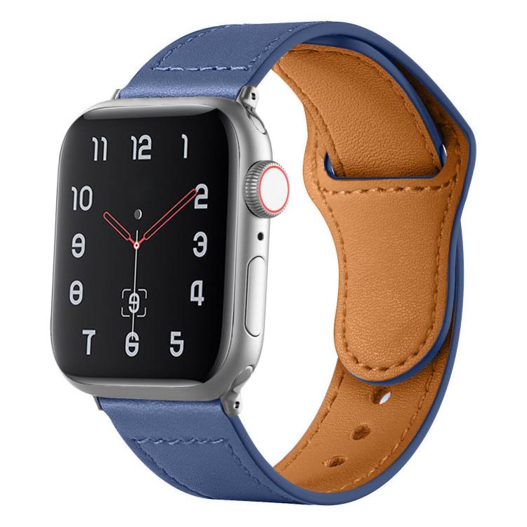 Correa de cuero genuino con hebilla inversa para Apple Watch de 46 mm, 49 mm, 45 mm y 44 mm (azul medianoche)