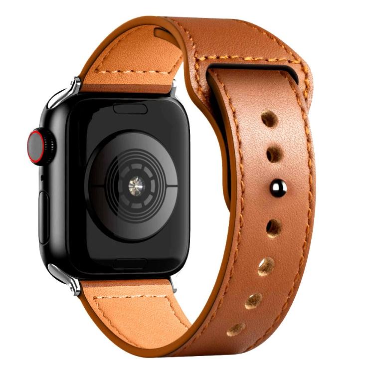 Correa de cuero genuino con hebilla inversa para Apple Watch de 46 mm, 49 mm, 45 mm y 44 mm (marrón)