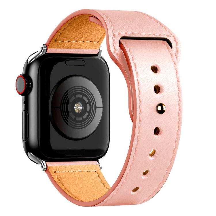 Correa de cuero genuino con hebilla inversa para Apple Watch de 46 mm, 49 mm, 45 mm y 44 mm (rosa)