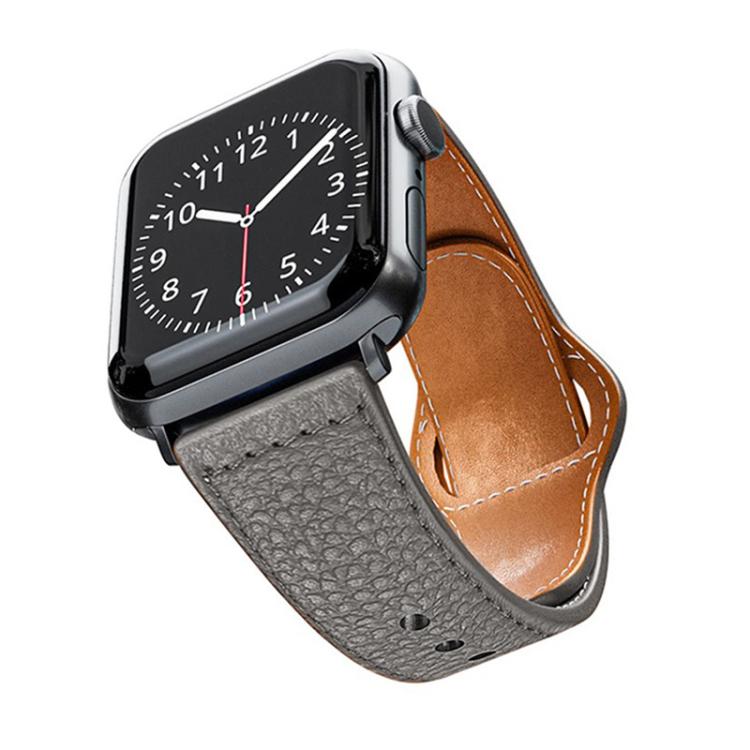 Correa de cuero genuino Litchi con hebilla inversa para Apple Watch de 42 mm, 41 mm, 40 mm y 38 mm (gris)
