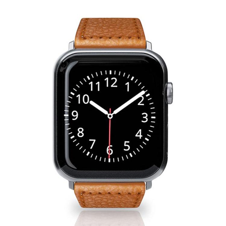 Correa de cuero genuino Litchi con hebilla inversa para Apple Watch de 46 mm, 49 mm, 45 mm y 44 mm (marrón)
