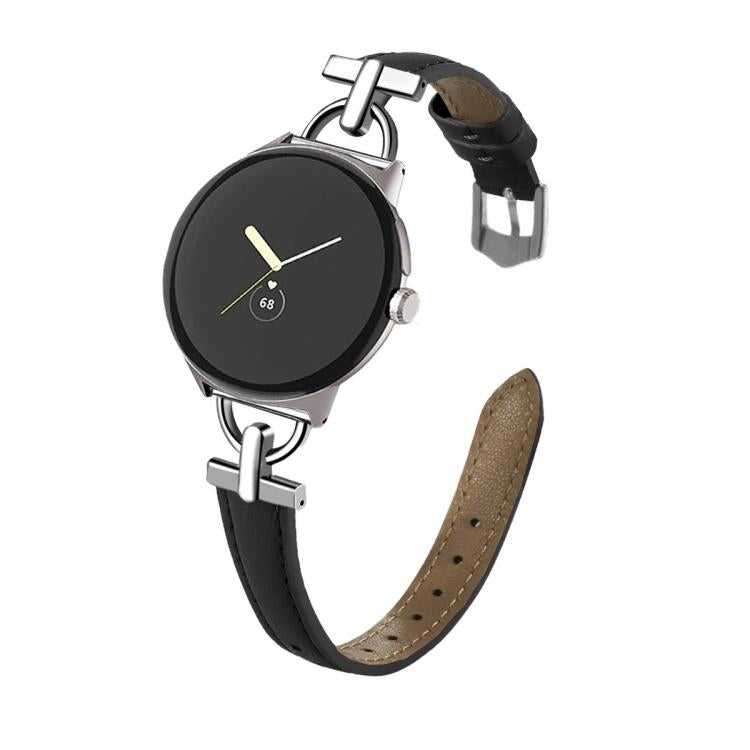 Correa de cuero y metal en forma de D de 45 mm para Google Pixel Watch 4/3 (negra)