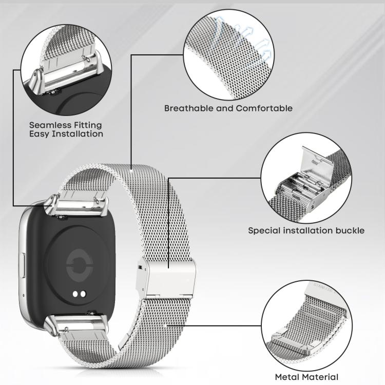 Correa de malla de acero y metal con hebilla xDfind para Redmi Watch 3 (plateada)