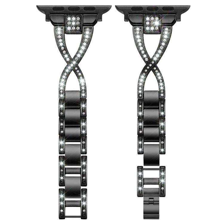 Correa de metal con diamantes de una sola fila en forma de X para Apple Watch 38/40/41/S10 de 42 mm (negro)
