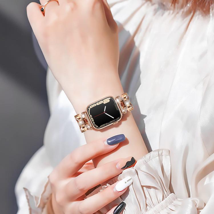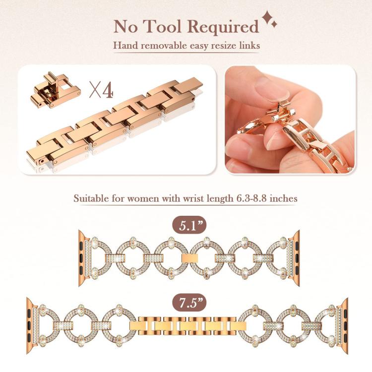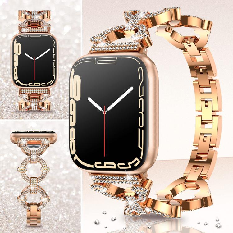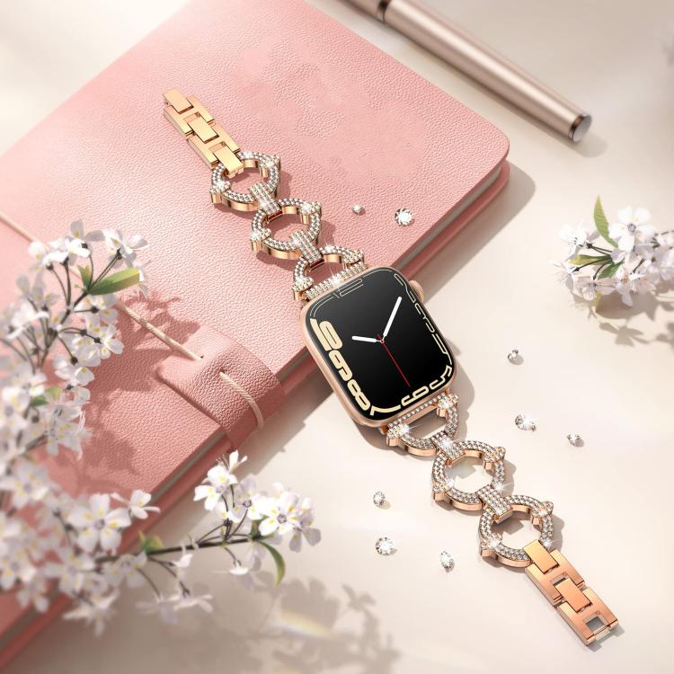 Correa de metal con diamantes en forma de O para Apple Watch 38/40/41/S10 de 42 mm (oro rosa)