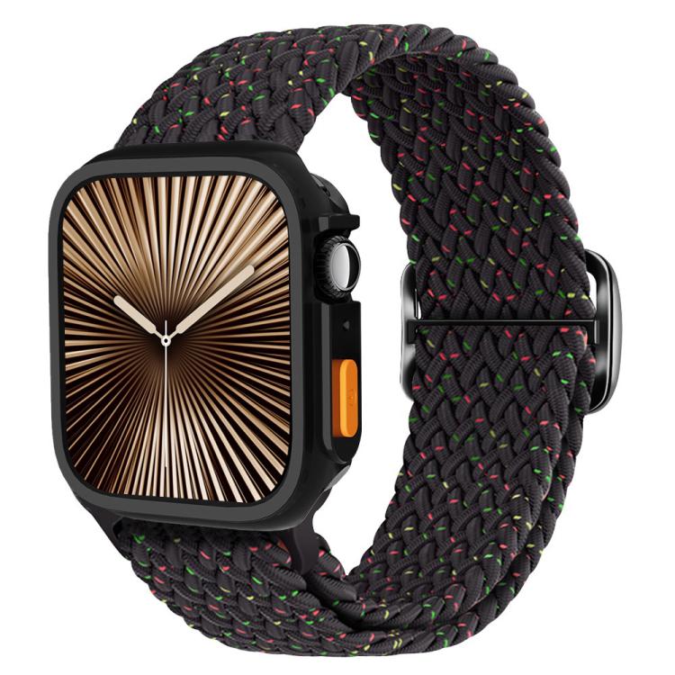 Correa de nailon con hebilla de escalera para Apple Watch de 44 mm/45 mm y funda de TPU (negro Starlight)