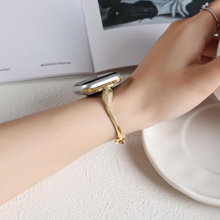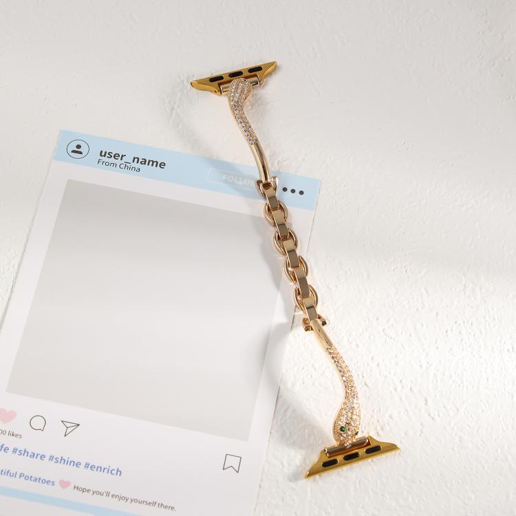 Correa de reloj con cabeza de serpiente y circonita incrustada de cobre para Apple Watch de 46 mm, 49 mm, 45 mm y 44 mm (dorada)