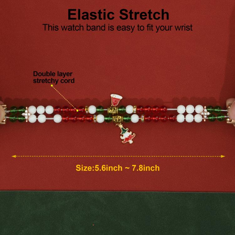 Correa de reloj con cadena de cuentas navideñas de 14 mm para Apple Watch de 42 mm / 41 mm / 40 mm / 38 mm de ancho (rojo, verde, blanco).