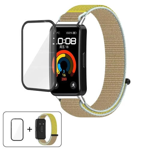 Correa de reloj con cierre de velcro de nailon y película curva 3D para Huawei Band 8/8 NFC (Camello)