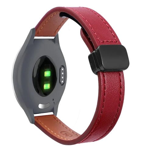 Correa de Reloj Cuero Microfibra con Hebilla Magnética 18mm para Garmin Vivoactive 4S (Rojo Vino)