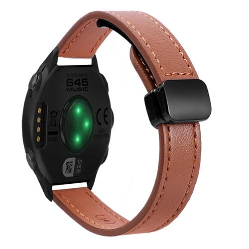Correa de Reloj Cuero Microfibra 20mm con Hebilla Magnética para Garmin Forerunner 645 Music (Marrón Moca)