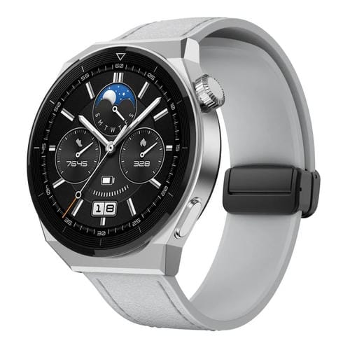 Correa de Reloj de Cuero y Silicona 22mm con Hebilla Magnética Negra (Gris)