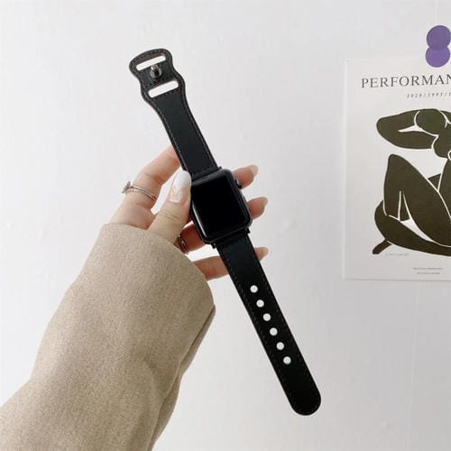Correa de Reloj de Cuero Retro con Hebilla 8 Formas para Apple Watch Ultra 49mm / Series 8 y 7 45mm / SE 2,6,5,4 44mm / 3,2,1 42mm (Negro)