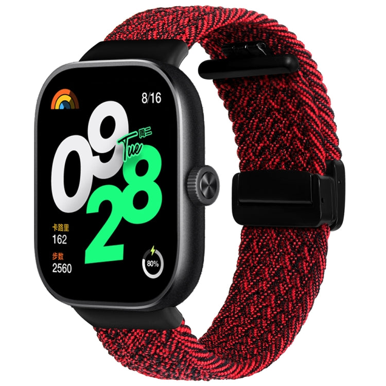 Correa de reloj trenzada con hebilla magnética plegable para Xiaomi Smart Band 9 Pro/8 Pro (negra y roja)