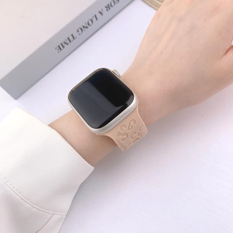Correa de silicona con hebilla cóncava de leopardo para Apple Watch de 42 mm, 41 mm, 40 mm y 38 mm (arena rosa)