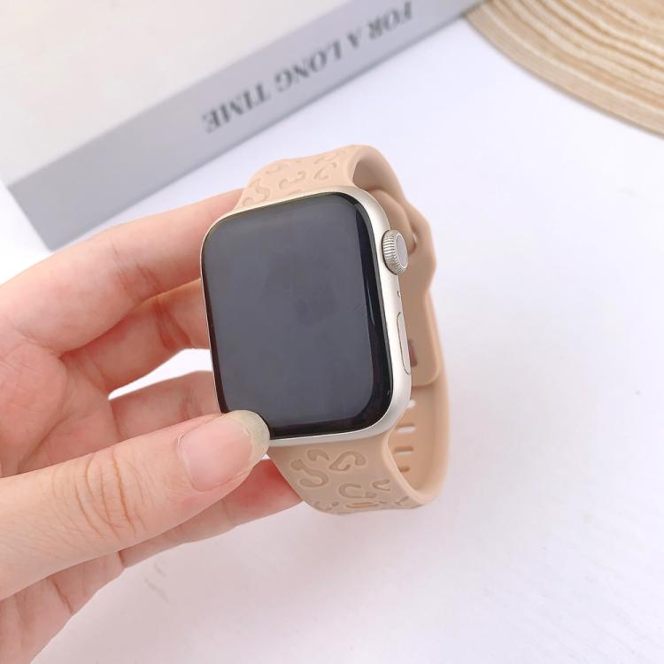 Correa de silicona con hebilla cóncava de leopardo para Apple Watch de 46 mm, 49 mm, 45 mm y 44 mm (té con leche)