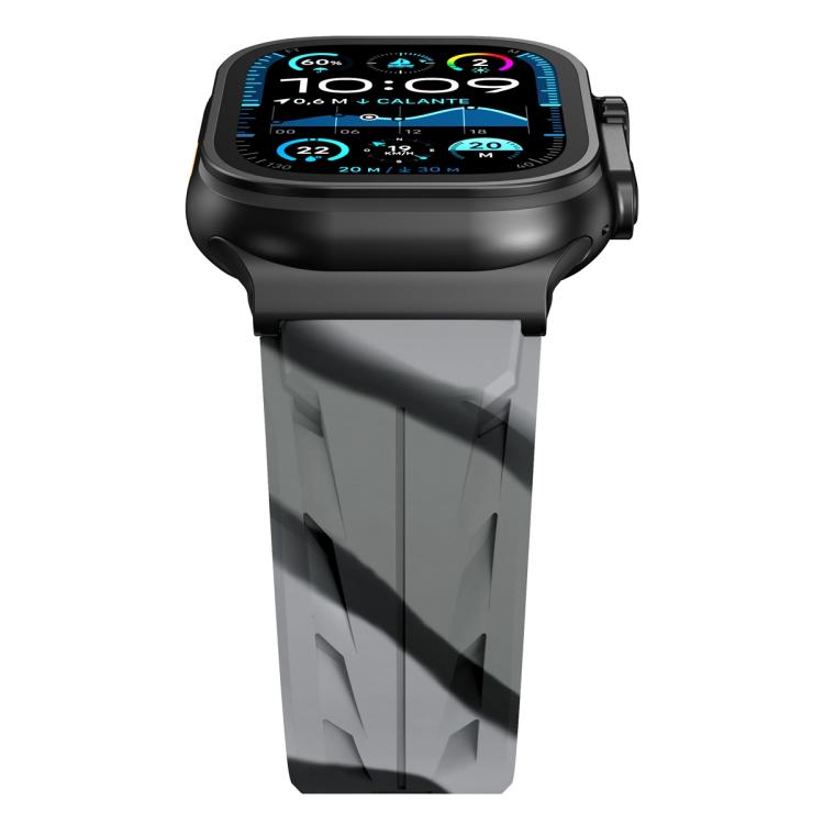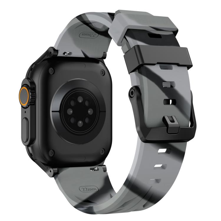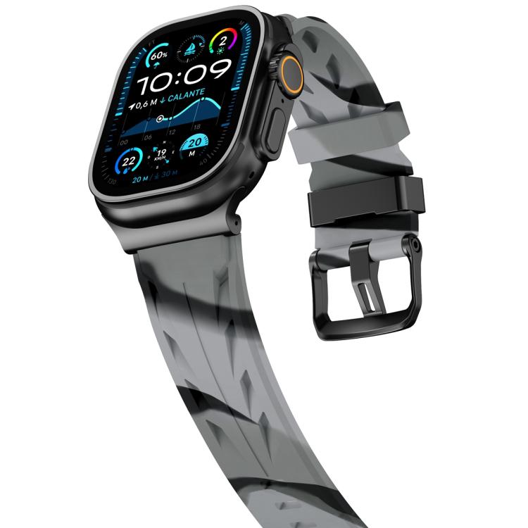 Correa de silicona con hebilla de pasador negra para Apple Watch de 42 mm / 41 mm / 40 mm / 38 mm (camuflaje negro y gris)