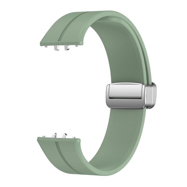 Correa de silicona con hebilla plateada y cierre magnético para Samsung Galaxy Fit 3 (gris y verde)