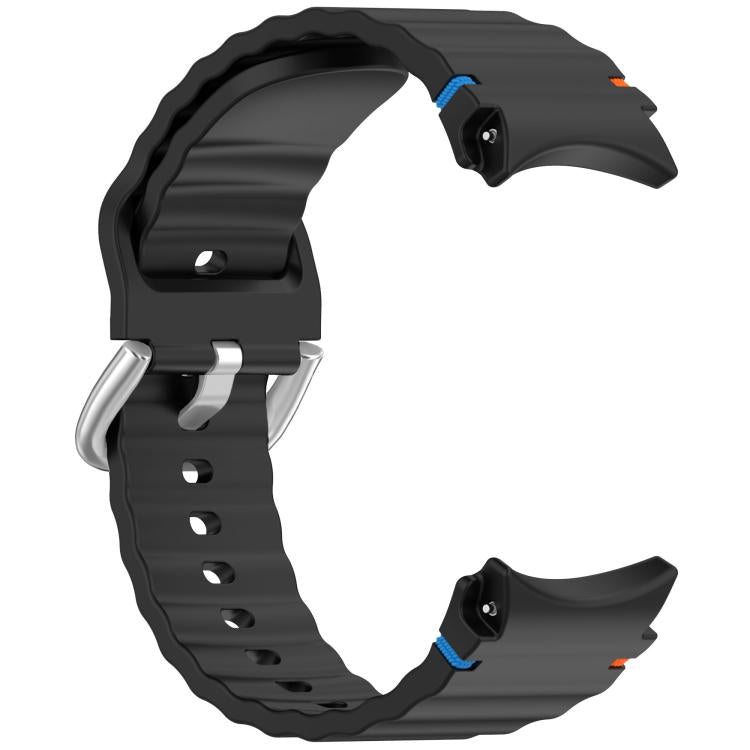 Correa de silicona con hebilla plateada y costuras onduladas para Samsung Galaxy Watch 7 de 40/44 mm (negra)