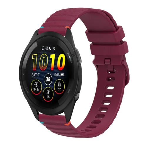 Correa de Silicona con Puntadas para Reloj Garmin Forerunner 265 22mm (Rojo Vino)