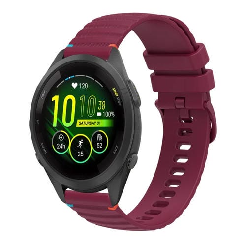 Correa de Silicona Garmin Forerunner 265S 18mm Puntadas Onduladas y Puntos (Rojo Vino)