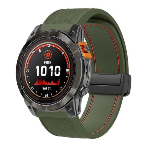 Correa de silicona de liberación rápida con hebilla magnética plegable para Garmin de 22 mm (verde militar y rojo)