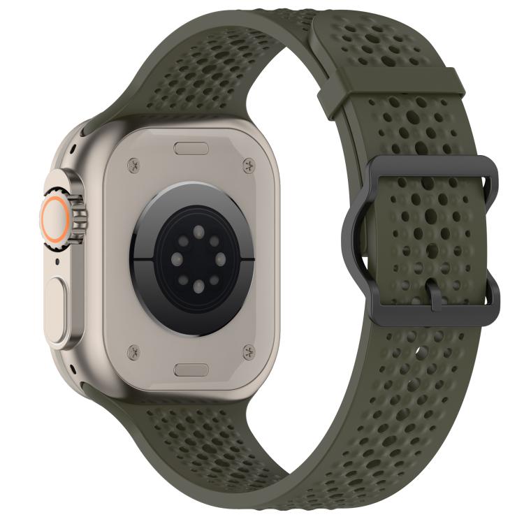 Correa de silicona transpirable para Apple Watch de 46 mm, 49 mm, 45 mm y 44 mm (verde militar)