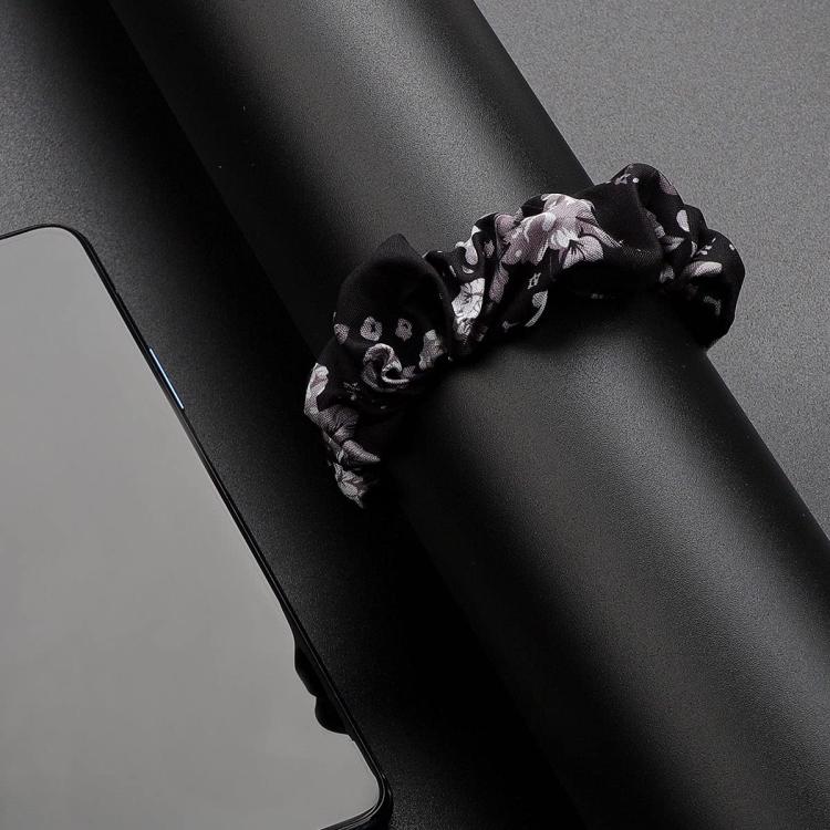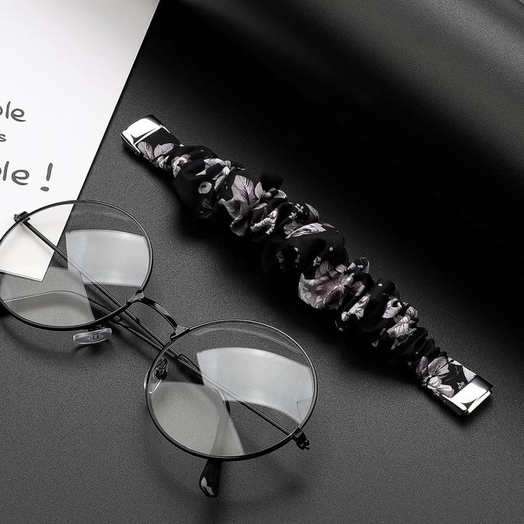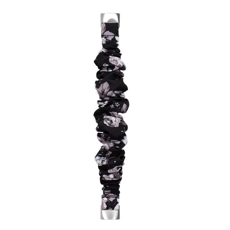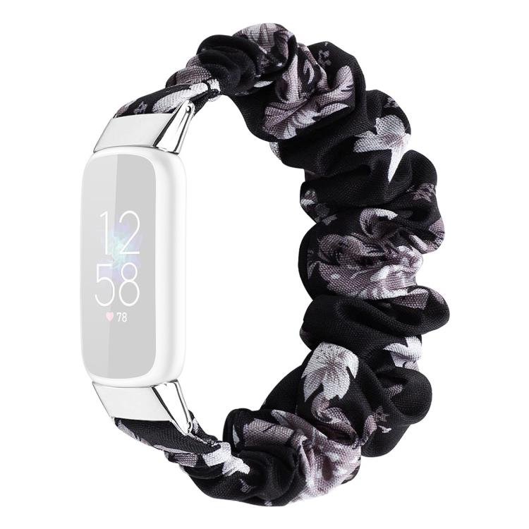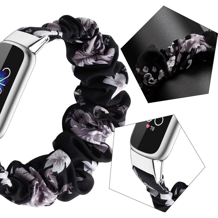 Correa elástica de poliéster xDfind con diseño de corona para Fitbit Luxe, talla L (fondo negro, flores grises)