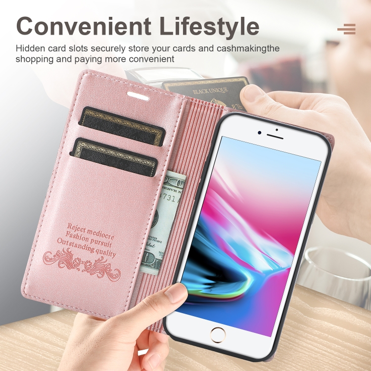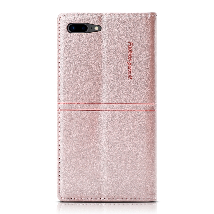 Funda de Cuero PU Dream Magnetic Sucion Business Horizontal Flip con Soporte y Ranura para Tarjeta y Billetera para iPhone 8 Plus / 7 Plus (Oro Rosa)