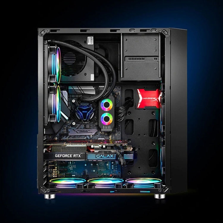 El enfriador de memoria ARGB de escritorio es un dispositivo diseñado para mantener la temperatura óptima de Módulos de memoria DDR, DDR2, DDR3, DDR4 y DDR5, previniendo el sobrecalentamiento que podría afectar el rendimiento y la estabilidad del sistema. Este modelo cuenta con un sistema de ventilación dual con control inteligente de temperatura mediante PWM, que ajusta automáticamente la velocidad del Ventilador según las condiciones térmicas de la CPU. Fabricado en ABS resistente, ofrece una instalación sencilla gracias a su diseño a presión y es compatible con Placas Base ASUS, MSI, GIGABYTE y ASRock, permitiendo sincronización de iluminación ARGB con 16 millones de colores programables. Su funcionamiento silencioso y eficiente contribuye a mejorar la experiencia del usuario en entornos de trabajo o gaming.