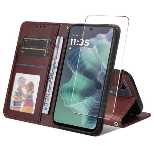 Funda para Teléfono Enkay con Textura de Piel de Becerro y Tarjetero para Motorola Moto G35 (Marrón)