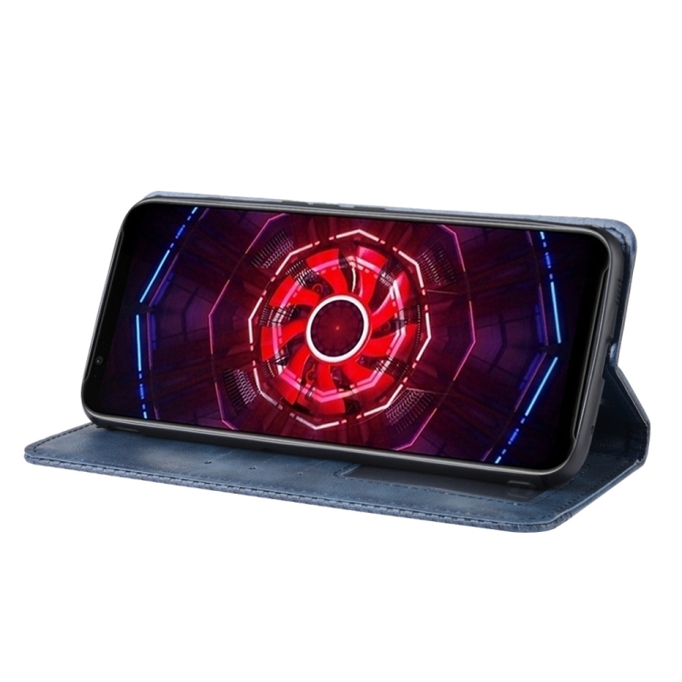 Estuche de Cuero ZTE Nubia Red Magic 3 Tapa Horizontal Textura Caballo Loco Retro Soporte Ranuras Tarjetas Marco Fotos (Azul)