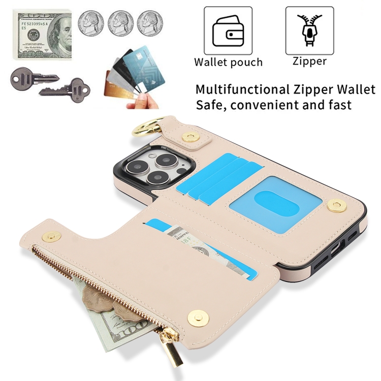 Estuche para Teléfono iPhone 16 Pro Max Rfld con Cremallera y Anillo de Doble Hebilla Antirrobo (Blanco)