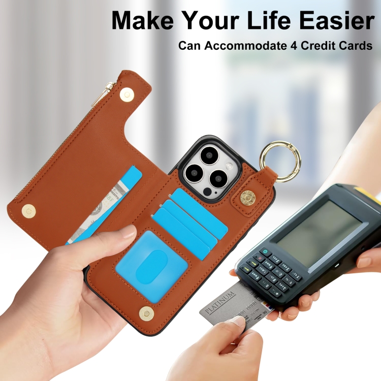Estuche para Teléfono iPhone 16 Pro Max Rfld con Cremallera y Anillo de Doble Hebilla Antirrobo (Marrón)