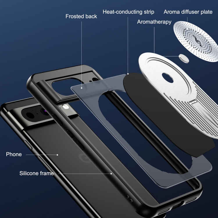 Estuche para Teléfono Google Pixel 8 con Soporte Aromaterapia y Disipación de Calor (Plateado)