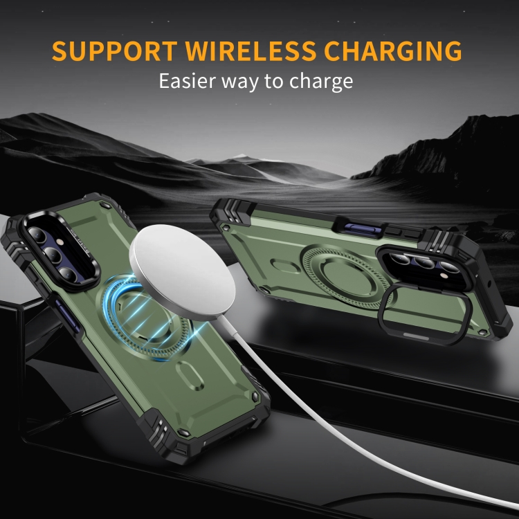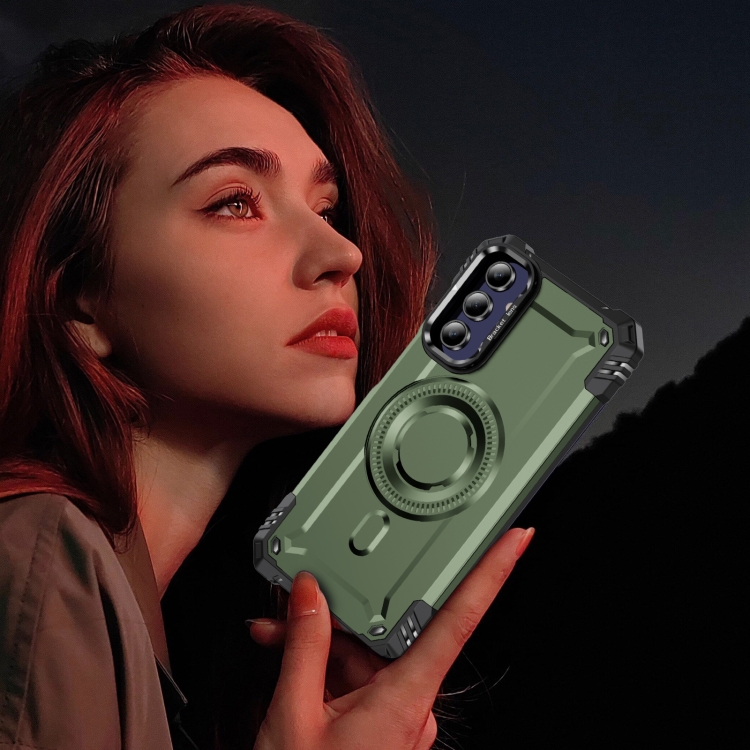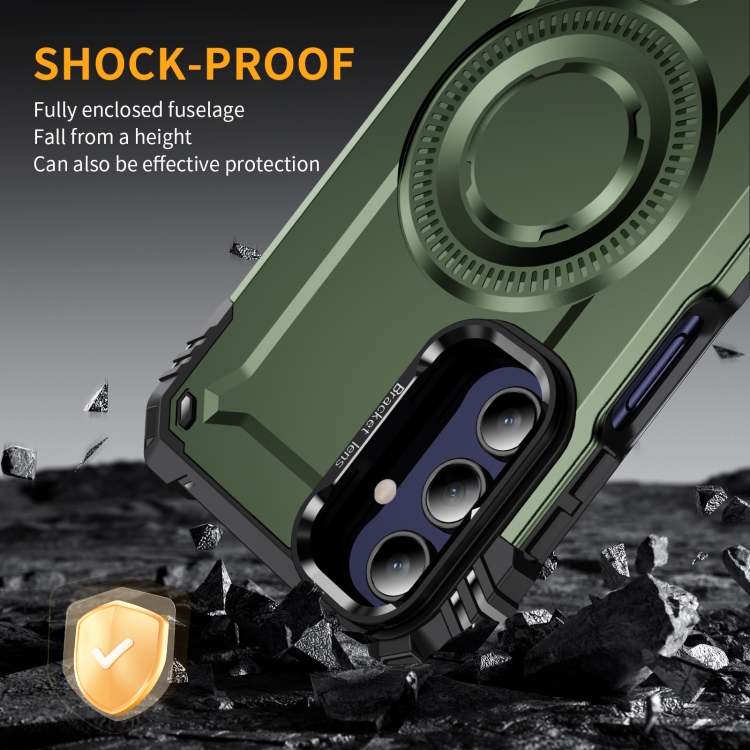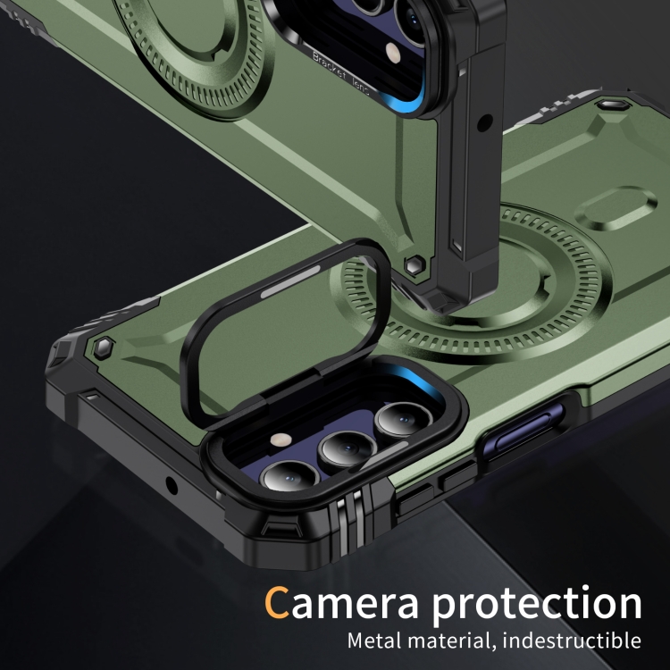 Estuche para teléfono Samsung Galaxy A15 con soporte para lente Magsafe (Verde Militar)