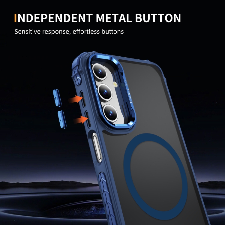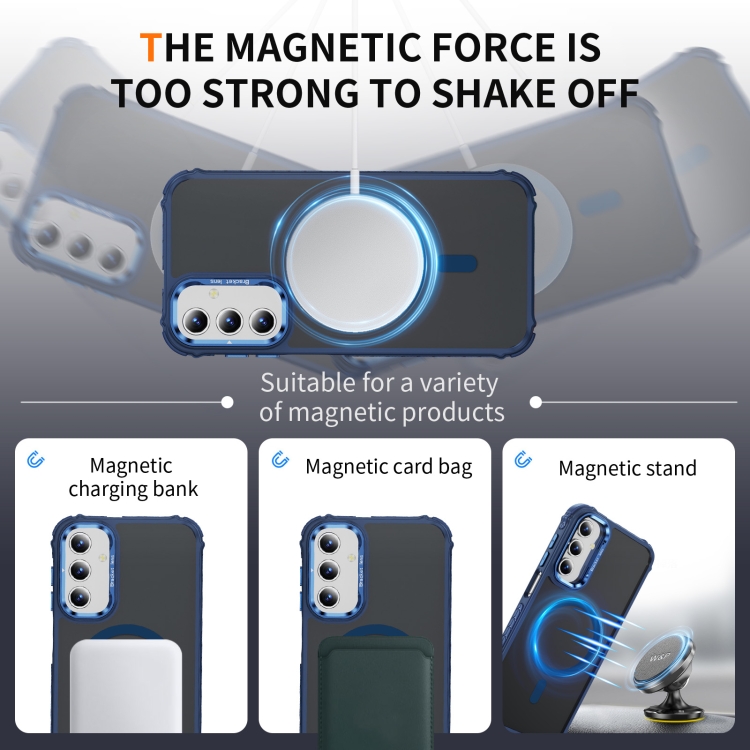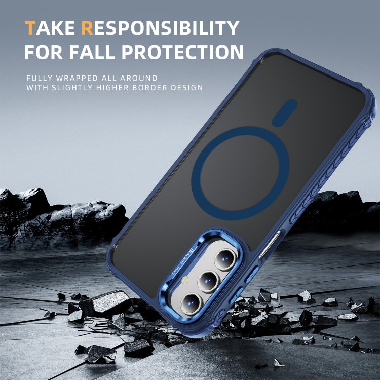 Estuche para Teléfono Samsung Galaxy A15 Rainbow Series Soporte para Lentes Magsafe Tacto de Piel (Azul)