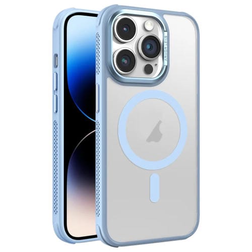 Estuche para Teléfono Magsafe iPhone 14 Pro Max Marco Metal Esmerilado Sensación Piel Enfriamiento (Azul Cielo)