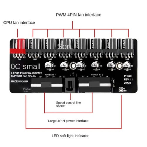 • Expansión a 8 Puertos para Ventiladores, Alimentación directa desde fuente de poder, Soporte para Ventiladores de alta potencia (12V 2A), dimensiones aproximadas 10 x 4 cm, peso 48,2 g, incluye Adhesivo EVA y 10 ataduras de Cable de nailon