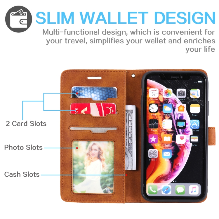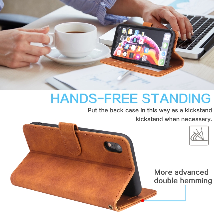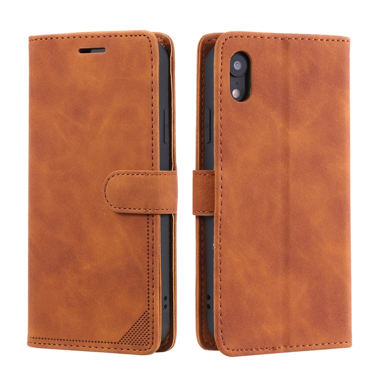 Funda de Cuero Anti-Robo para iPhone Xr con Flip Horizontal (Brown)