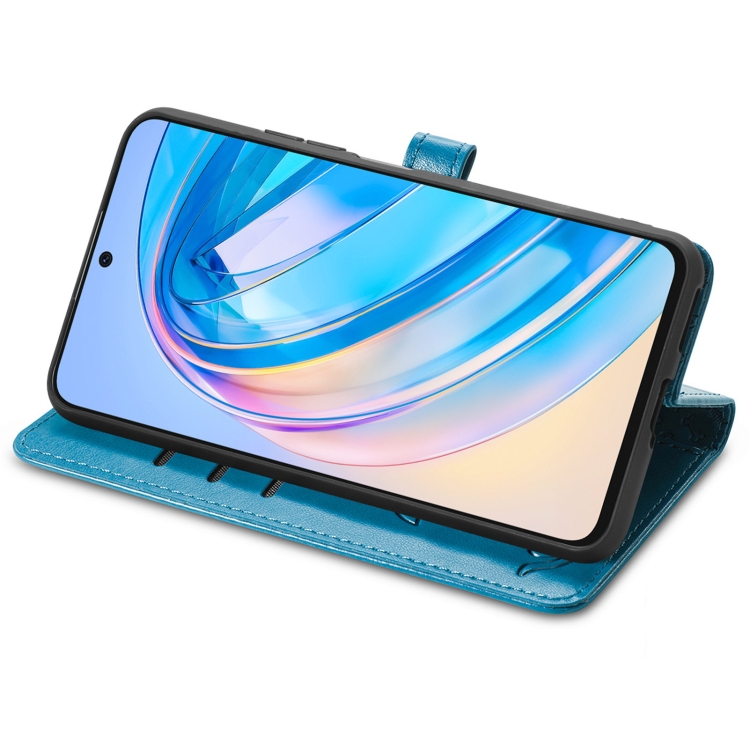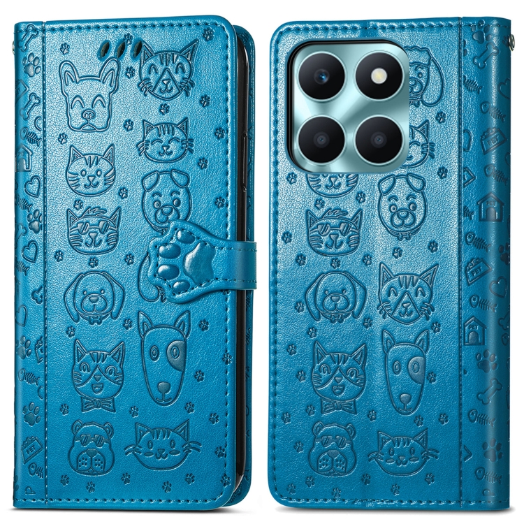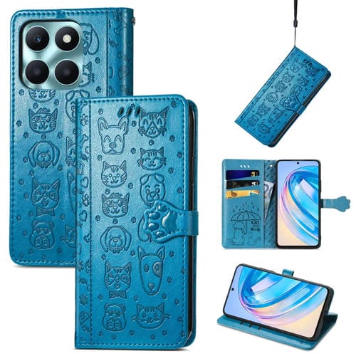 Funda para Teléfono For Honor X6A de Cuero con Relieve de Perro y Gato (Azul)
